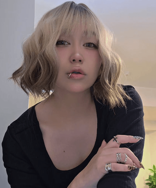 ロングの黒髪イメージから一転、金髪ショートボブ風にイメチェン。