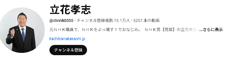 「NHKをぶっ壊す!」のフレーズで一躍有名になった政治家・立花孝志さん。